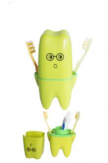 両サイドに歯ブラシを立てられるだけではなく、蓋を外せばうがい用のコップ、中には歯磨き粉まで収納出来ます。