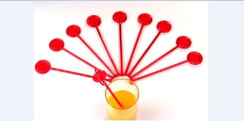 見た目はシンプルなマドラーですが、上部のプレートがくるくる回るかわいいデザインになっています。