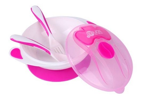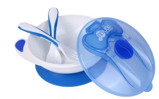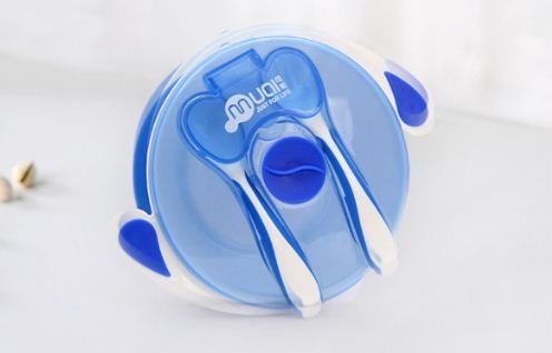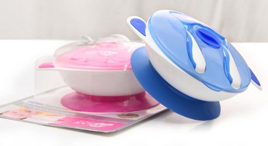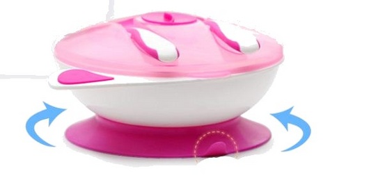ボウルの底面が吸盤になっており、机と密着させることが出来るので手があたってこぼれてしまう事がありません。