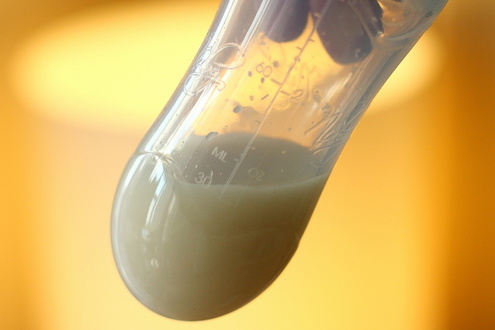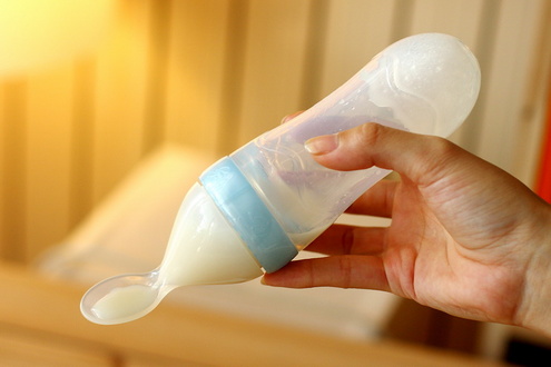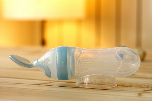 先端がスプーンの形になった哺乳瓶です。