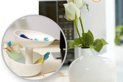 通常時はおしゃれな一輪挿しとしても使え、上部を逆にしてセットすると2段式の小物入れとしてもお使いいただけます。