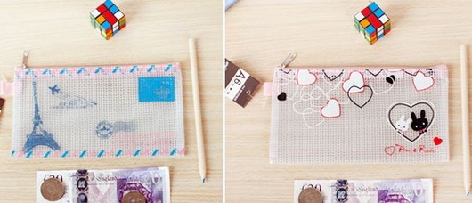 中身が透けて見えるので何が入っているかすぐ確認できるのもPVCポーチの利点です。