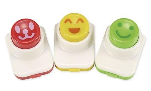 のりを挟んで押すだけで簡単にハートや星、さまざまな表情ののりが切り抜けます。