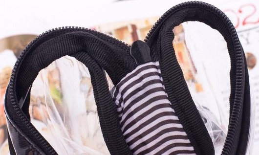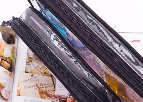 中身が透けて見えるので何が入っているかすぐ確認できるのもPVCポーチの利点です。