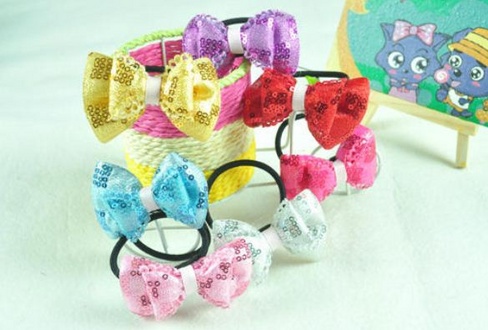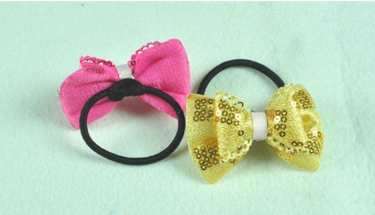 スパンコールがキラリと光るおしゃれなリボンゴムです。