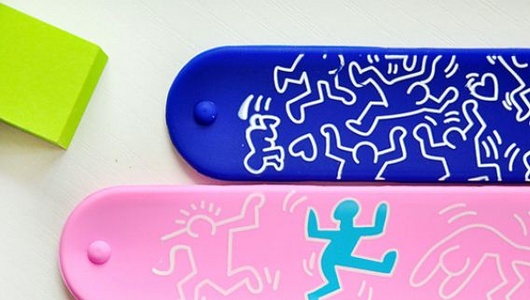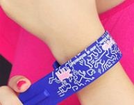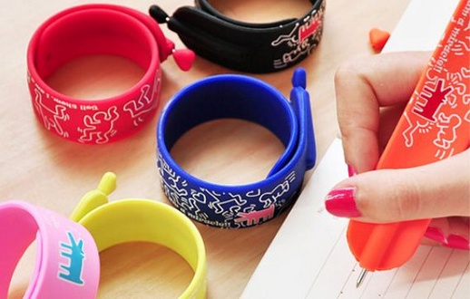 手首にパチン!と当てるとくるくるっと巻きつくブレスレット型のボールペンです。