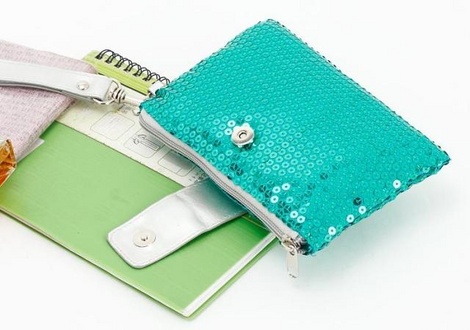 スパンコールがキラリと光るおしゃれなポーチです。