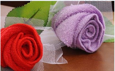 薔薇型デザインの梱包タオルハンカチになります。