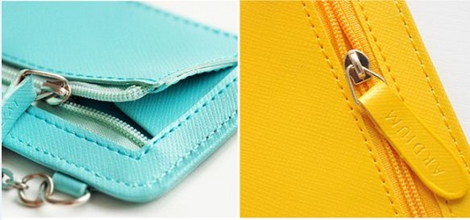 片方マチの付いたポケットですので中身も取り出しやすく、カードも2枚収納出来ますのでPASMOやsuica以外のカードもご一緒に持ち歩いていただけます。