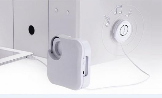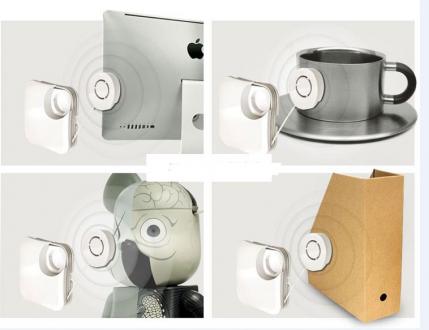 振動身近にあるものに貼り付けるだけで、貼り付けた物を振動させスピーカーにしてしまう便利アイテムです。