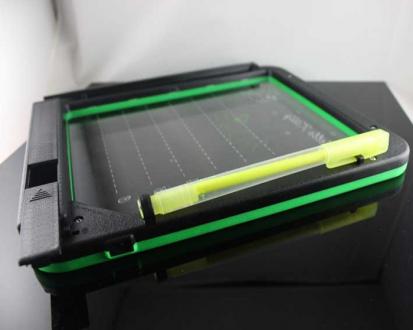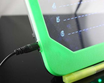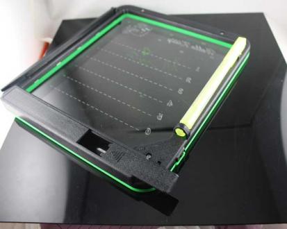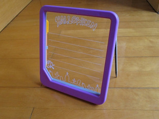 スイッチONで、サイドからLEDがボード部分を照らし、蛍光ペンで書いた文字を反射します。