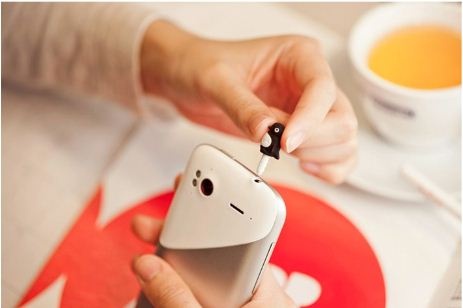 スマートフォンのイヤフォンジャックに差し込むアクセサリーです。