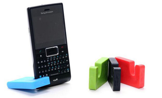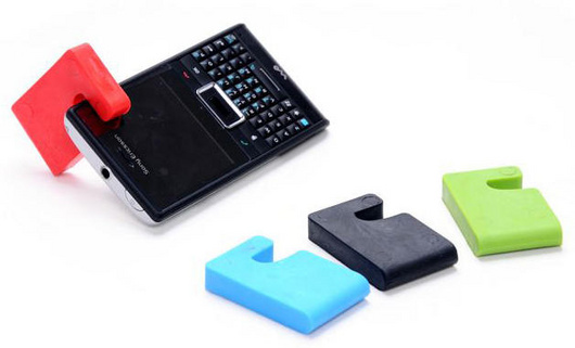 本体の切り込み部分にスマートフォンをはめ込むだけなのでさまざまな機種に対応でき、また縦横問わず立てる事が出来ます。