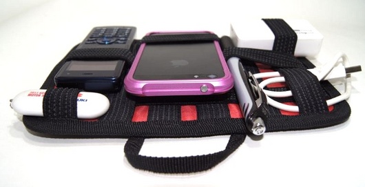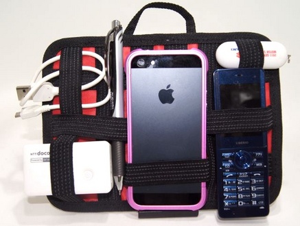 こちらのインナーボードはインナーバッグの様なポケットタイプではなく、ゴムで止めておくタイプになりますので、wifiや充電器・スマートフォンなど形状を問わず挟んでおくことが出来ます。