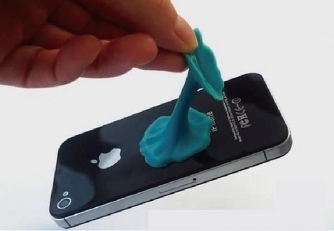 吸盤を携帯背面に吸着させ立て掛ける事が出来ます。