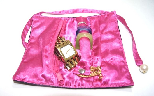 スナップボタン付きのリングホルダーとピアスやイヤリングを入れるのにぴったりなポケットが3つ、ファスナー付の大きなポケットが1つで収納力抜群なので旅行の時にもぴったりなあると便利なおしゃれアイテムです。