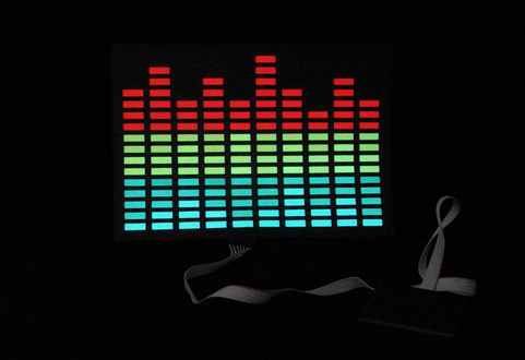 スイッチを入れると音・音楽に反応して光るミュージックフィルムシートです。