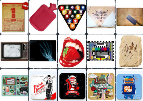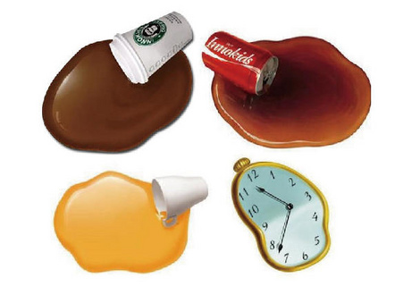 ドリンクがこぼれてしまっていたり、ペットやピザ等さまざまなユーモアデザインがあります。