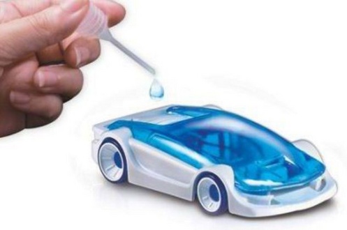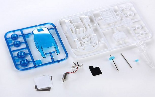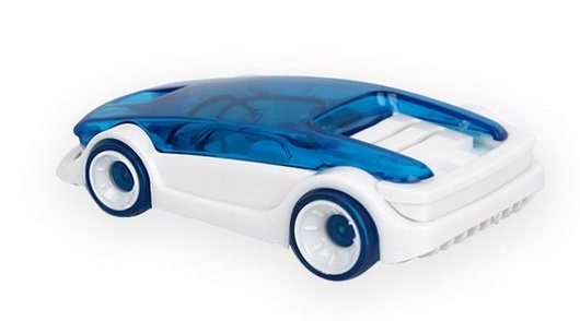 乾電池不要の食塩水で動く組み立て式のおもちゃのエコカーになります。