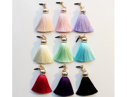 ゆらゆら揺れるフリンジデザインのイヤホンジャックになります。