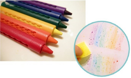 こちらのクレヨンはもちろんお水と付属スポンジで綺麗に消すことができるのでとても便利です。