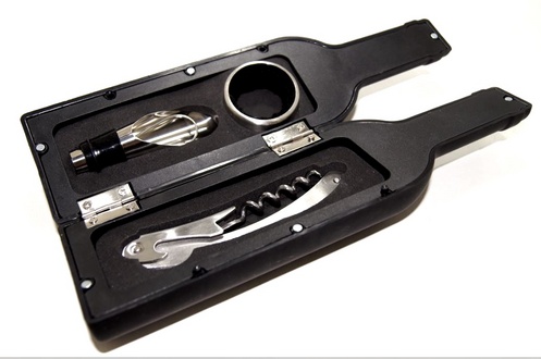 ワインボトルの形状のケースに入ったおしゃれなワインオープナーセットになります。