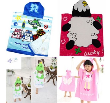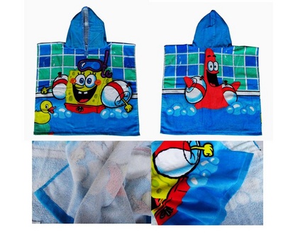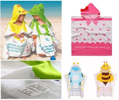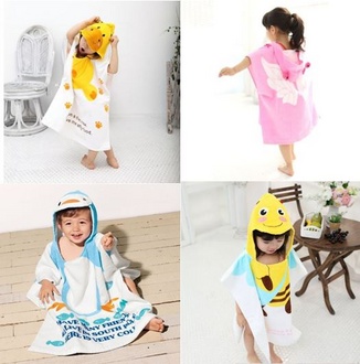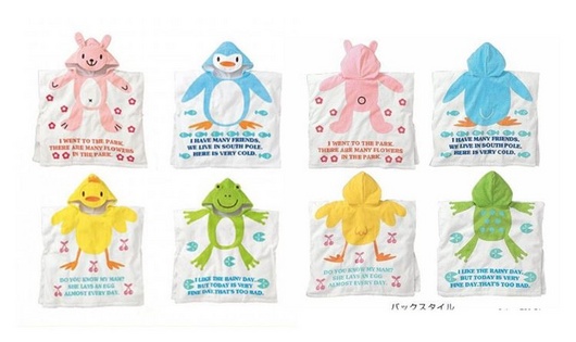 かわいいフード付きのタオルポンチョになります。