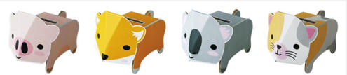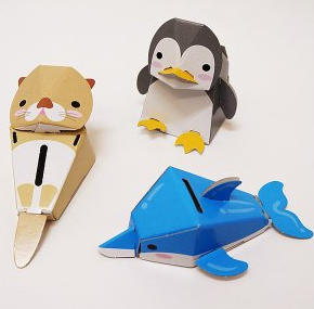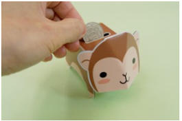 ペーパークラフトでつくる貯金箱です。 お子さん向けノベルティにもピッタリのグッズで デザインの汎用性も高い商品です。 イメージ画像1~5の詳細 サイズ…210×372(297+55)、用紙…コート90㎏、色数…4/0c ダンボール:サイズ…A4、色数…印刷なし シール:サイズ…A5、色数…4/0c 表紙,本体組立部分,本体貼り付け用シール 100円玉なら70個、7,000円分 500円玉なら50個、25,000円分貯まります。 もちろん、画像の仕様でなくても どんなものでもご対応いたします。 サイズや印刷、デザインや仕様などお送りください