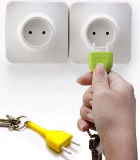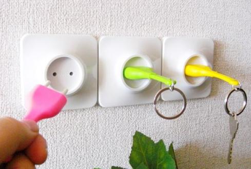 壁にコンセントソケット型のホルダーを貼り付けておけばコンセントを差し込む感覚で鍵をキープする事ができます。