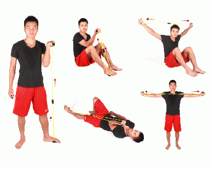 両腕で伸ばしたり、足に通したりと使い方は様々で多種トレーニングに負荷をかけ使用出来ます。