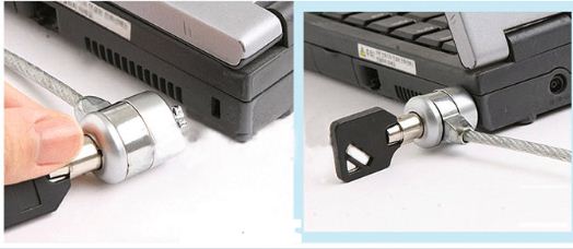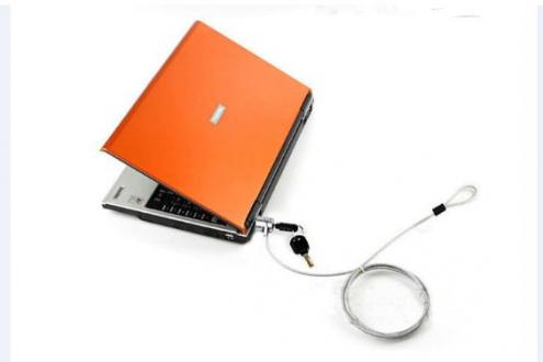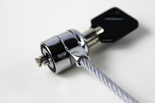 ノートパソコン等のセキュリティスロットに挿し込んでボタンひとつでワイヤーとノートパソコンを接続します。ワイヤー本体にカバーが巻いているためデスク等にキズが付きません。